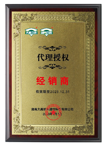 為了助力銷售渠道正規化,同時進一步協助經銷商門店進行推廣,打造線下門店在消費者心中專業、值得信賴的形象。大禹巧匠防水在正規的銷售渠道頒發了代理授權牌。